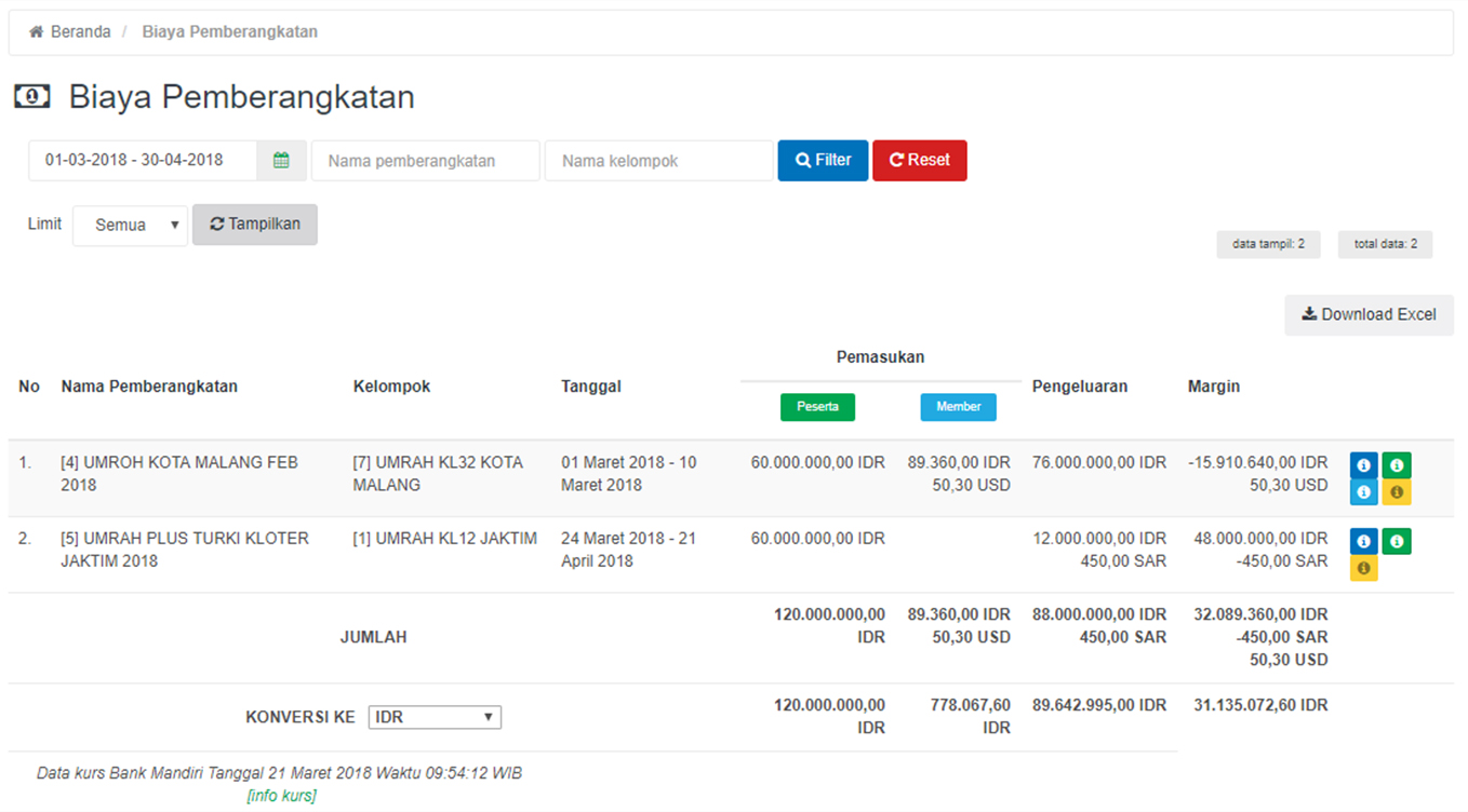 The app featured room reservation, meal plan, vehicle trip reservation both in Indonesia & UEA during the umrah period. And all will be allocated by the budget of member have.